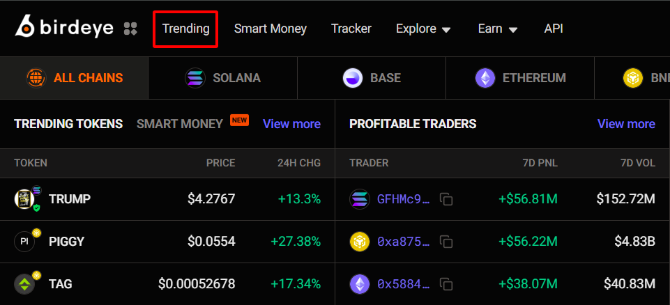 - The Top Trending tab instantly shows you the tokens that are getting the most attention, helping you catch new market trends early.