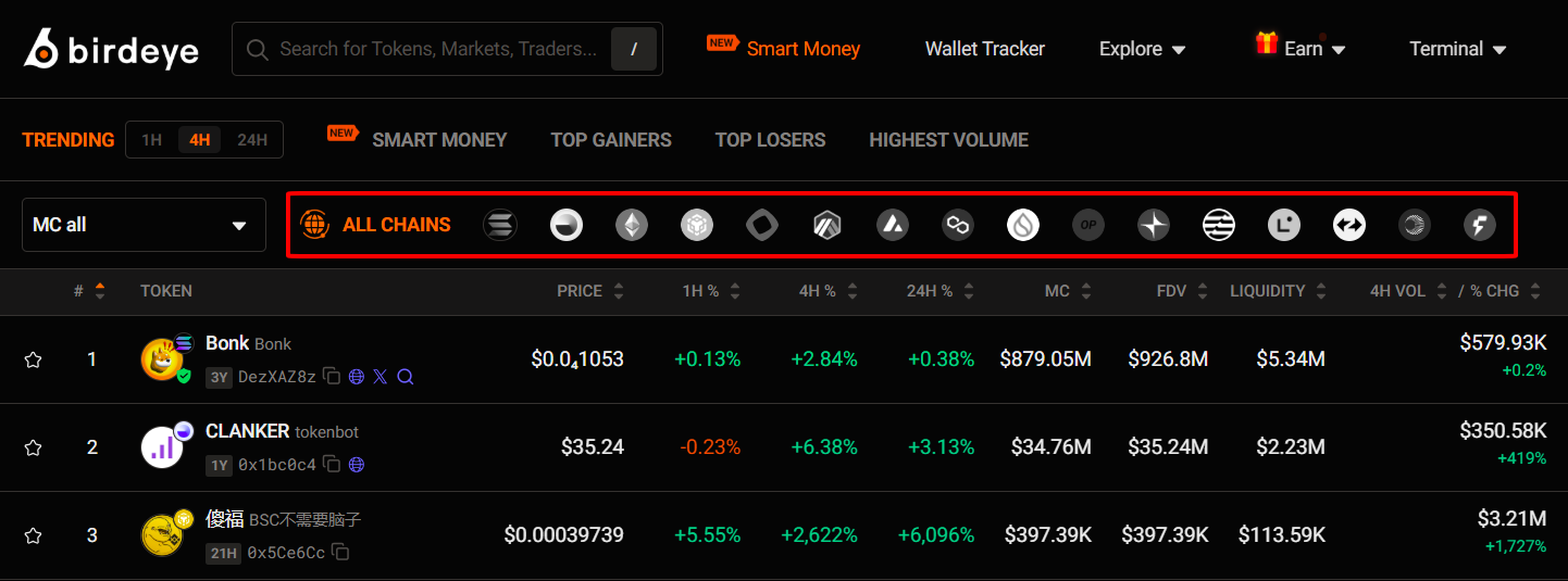 The crypto market has million of tokens across many blockchains. Filtering by a specific blockchain helps you eliminate irrelevant data and save analysis time.
