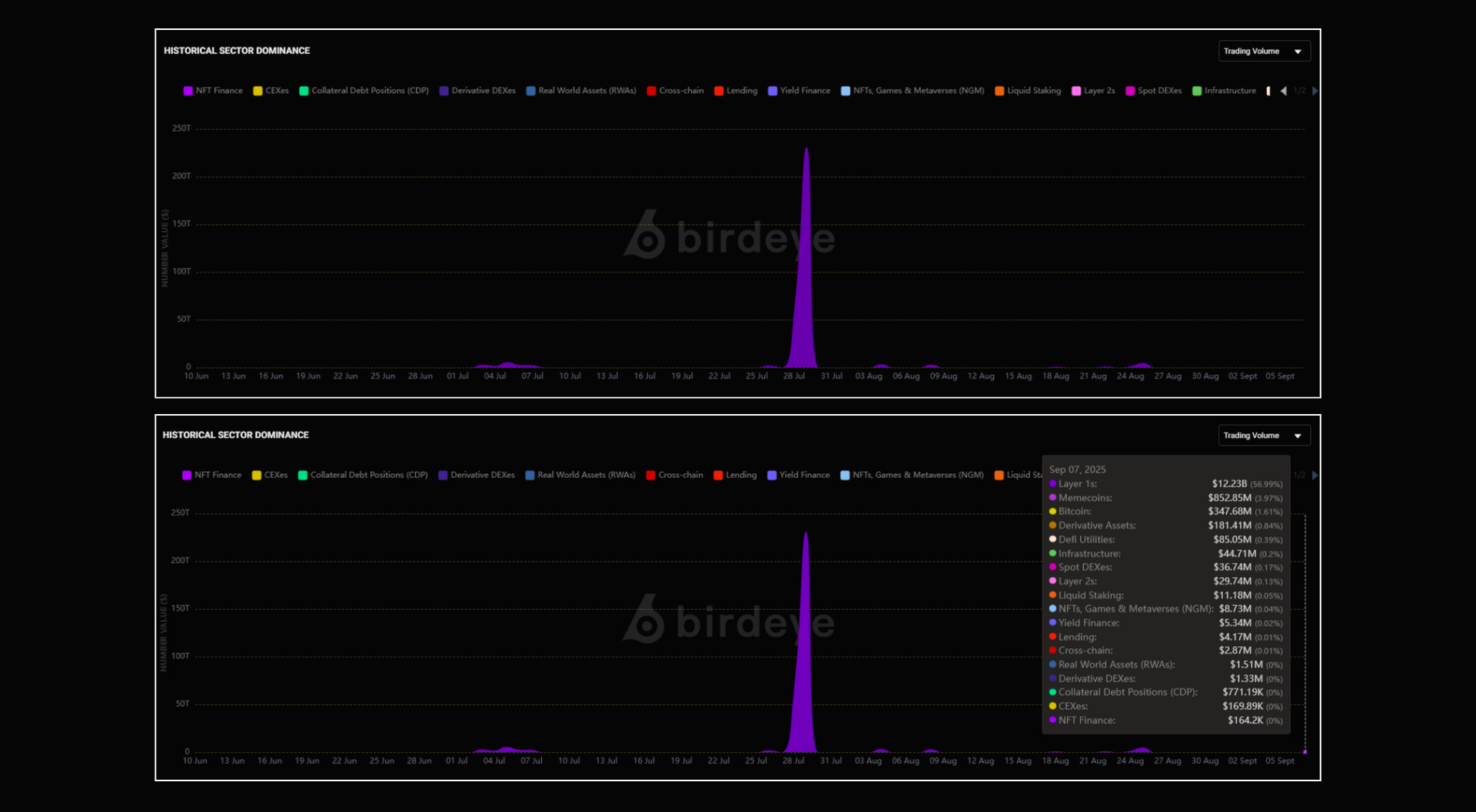 For example, on July 9, 2025, Layer 1s accounted for over 56% of the trading volume, which was approximately $12.23B.
