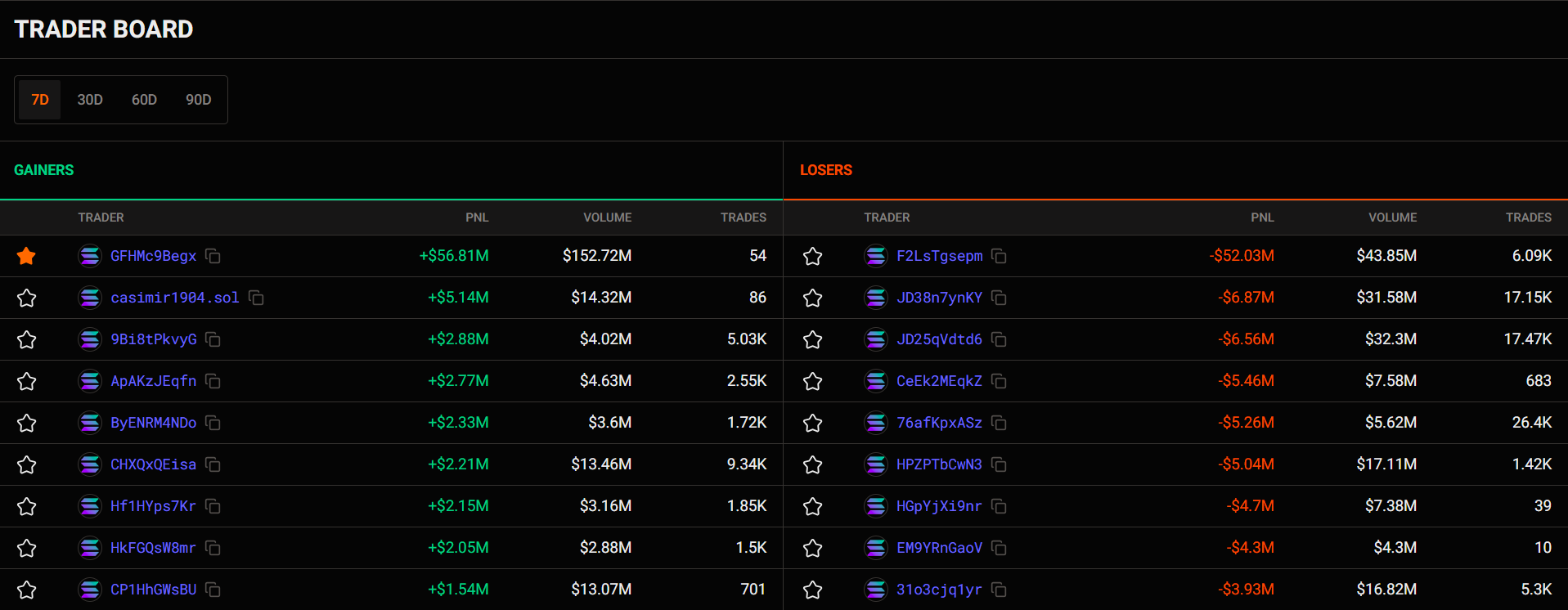 - Their trading performance, PNL, win rate,...