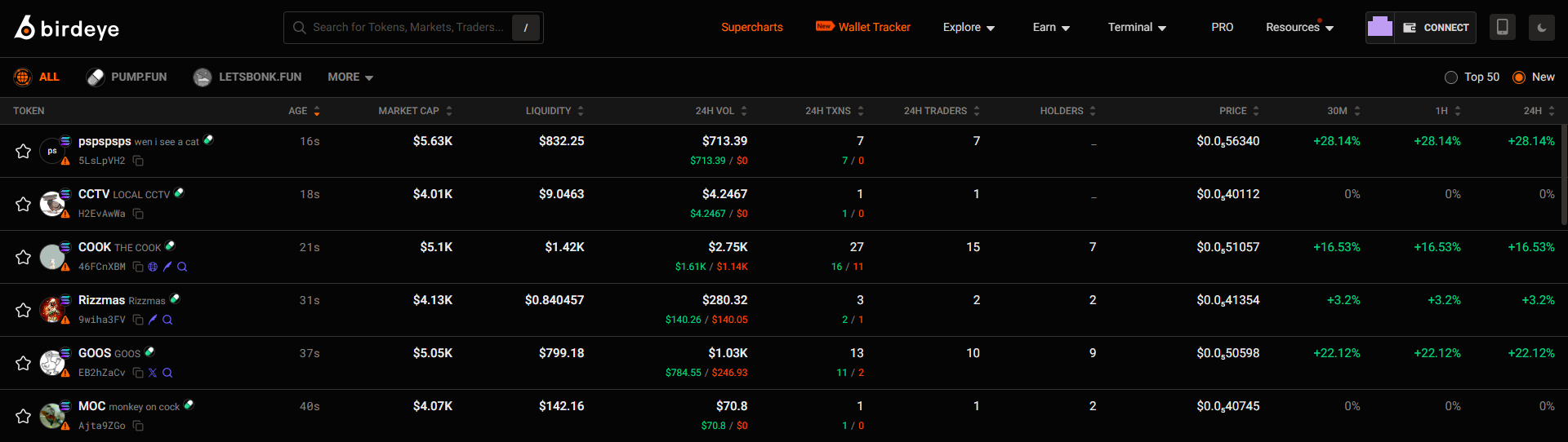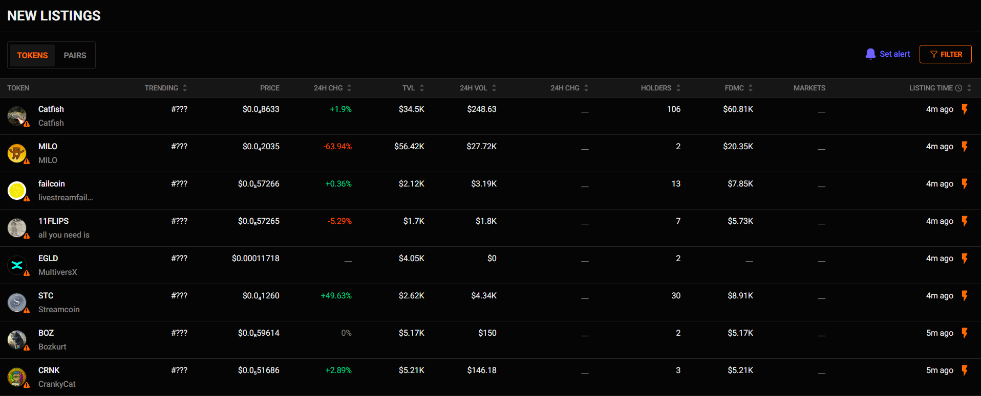 - Easily filter and find newly listed tokens on the blockchain