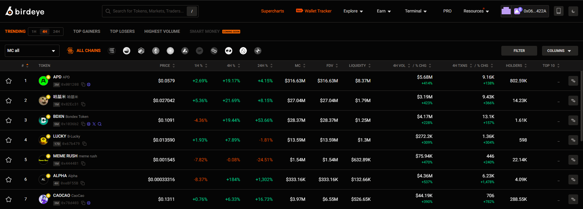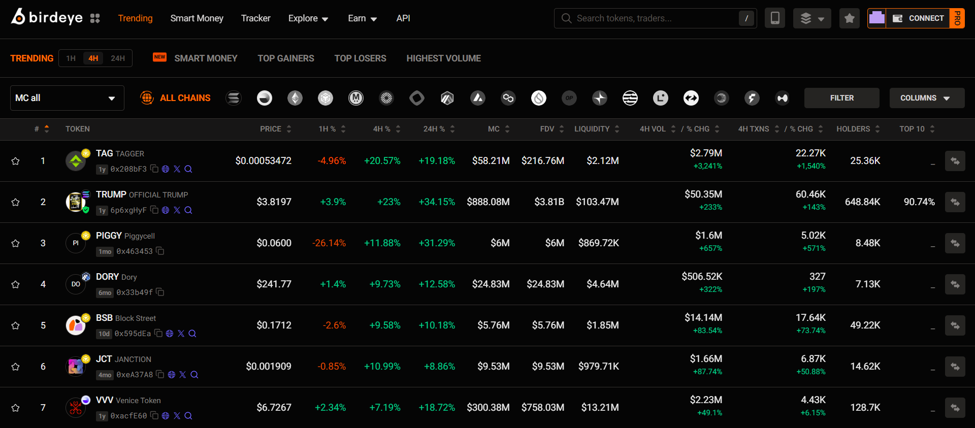 - Sort the tokens by Market Cap, Liquidity, 24h Trading Volume and more to gauge market interest