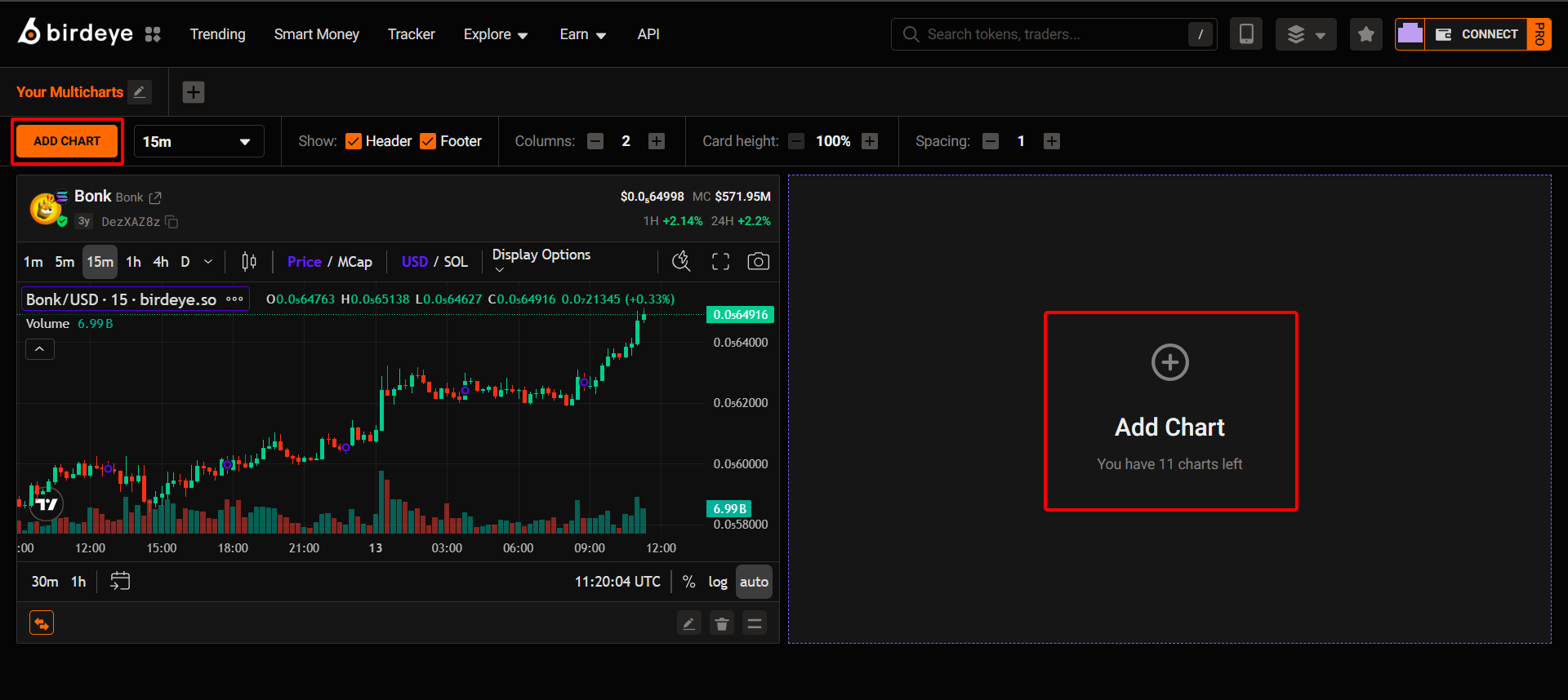 Click “Add chart” to start tracking any token instantly.