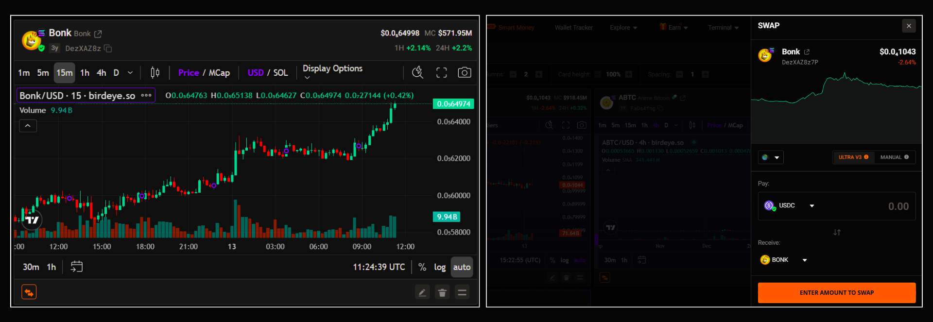 [1] Quick Buy/Sell – Trade immediately when you spot an opportunity or risk. Connect your wallet to Birdeye to execute trades directly from the chart.