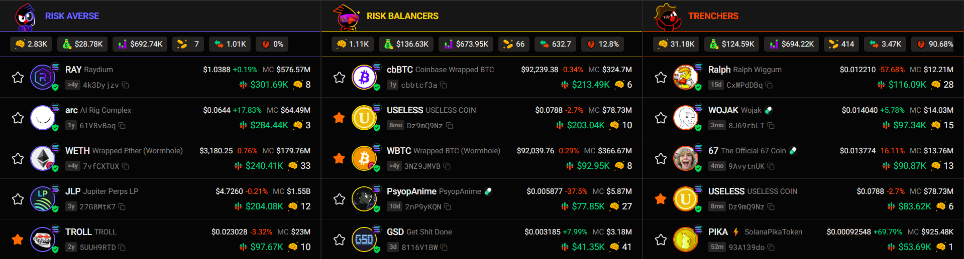 Important Note: Tokens in the Trenchers group do not necessarily mean high risk. It only means the token is actively traded by high-risk, high-reward traders.