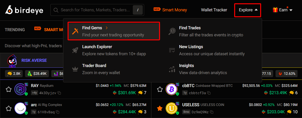 To start, click here (Smart Money) or go to ‘Explore → Find Gems → Smart Money’.