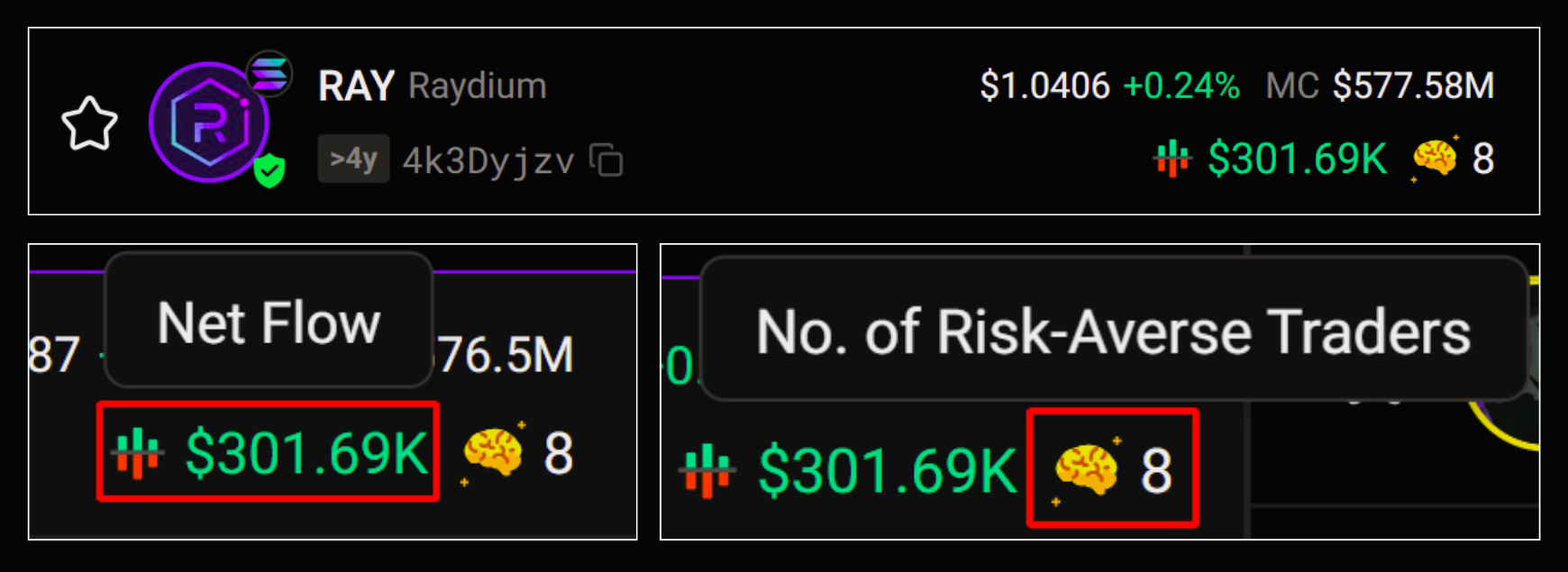 Instead of just looking at price, this section helps you quickly assess the level of smart money interest in each token.