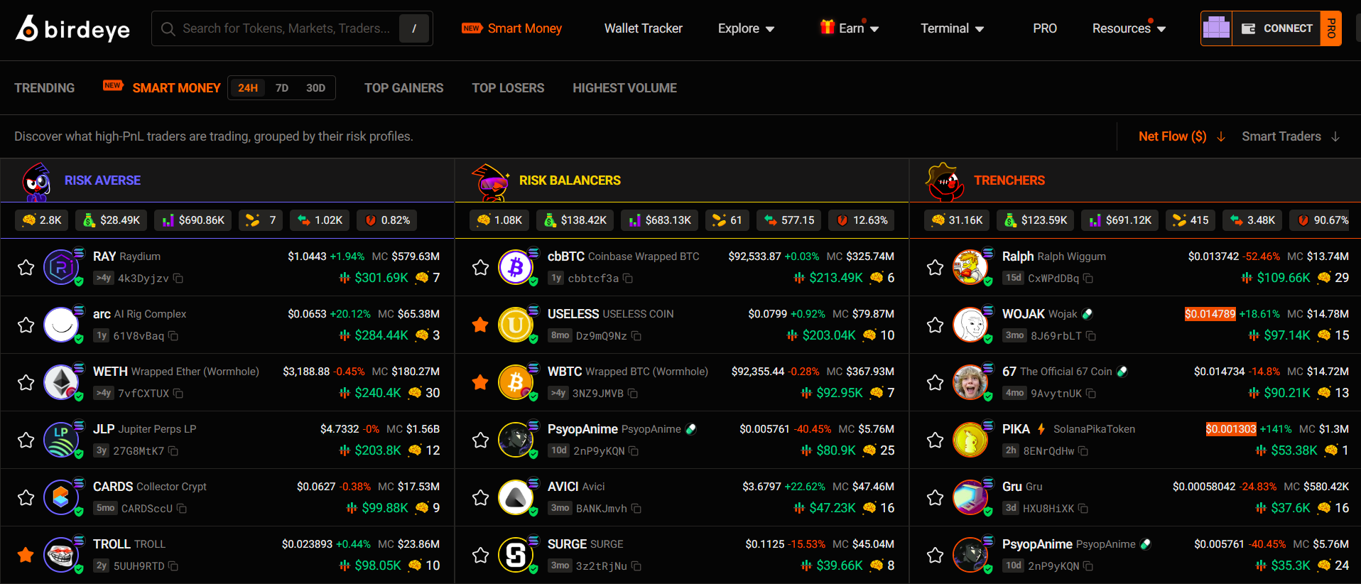 Birdeye breaks smart money into clear risk profiles so you can understand who is buying and their trading style: