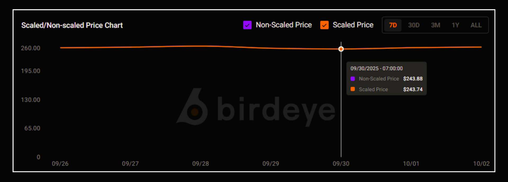 - Scaled & Non-scaled Price Chart: Compares token price adjusted for supply changes vs. raw onchain value