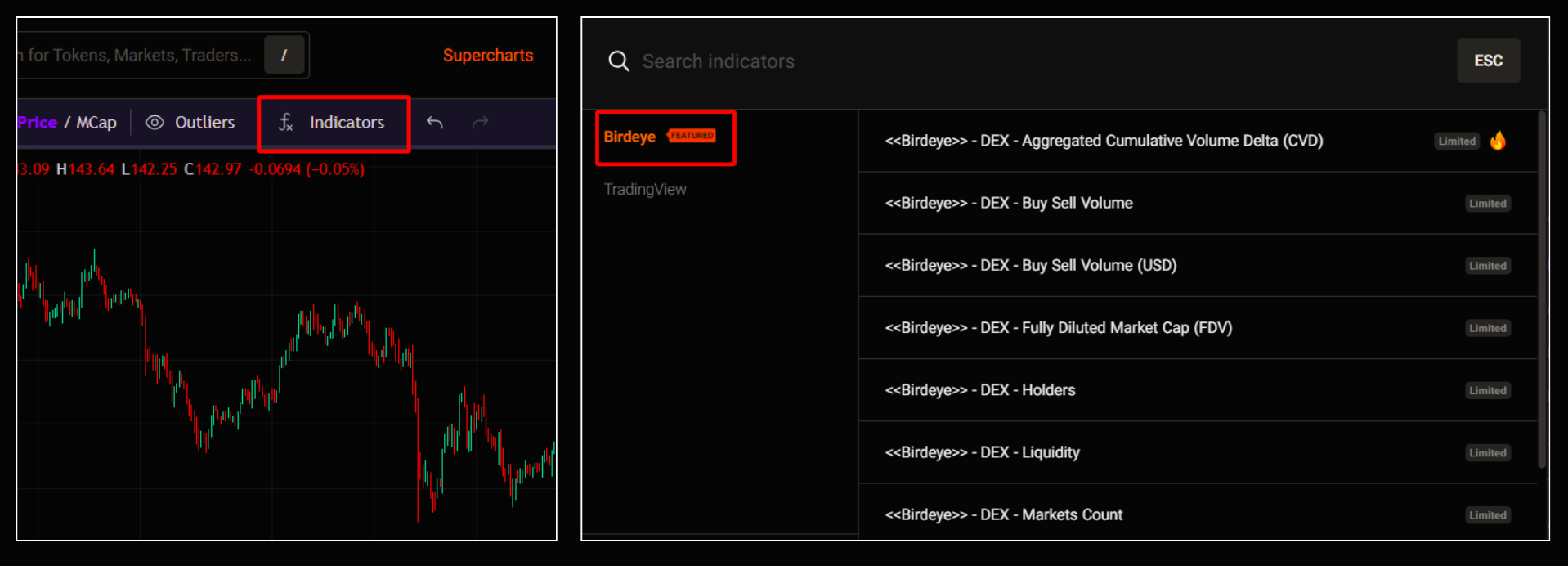 - Birdeye: Includes all exclusive indicators created by Birdeye.