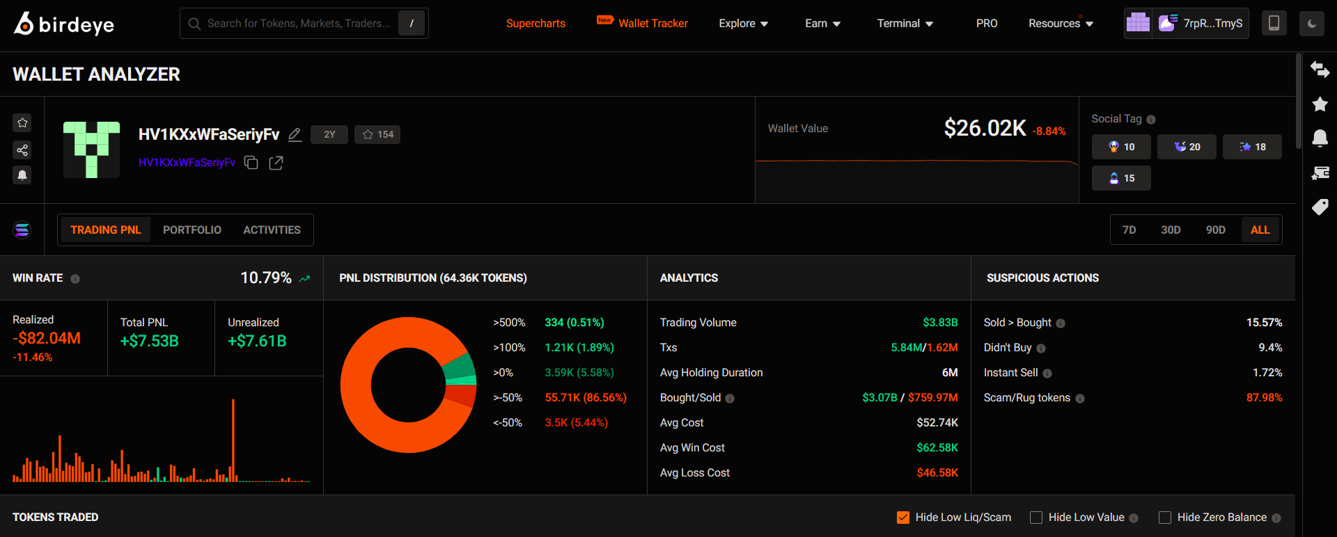 You can connect your wallet directly to Birdeye to see the full detailed analysis.